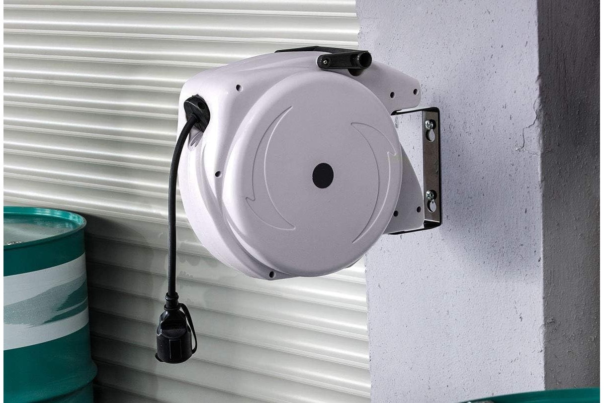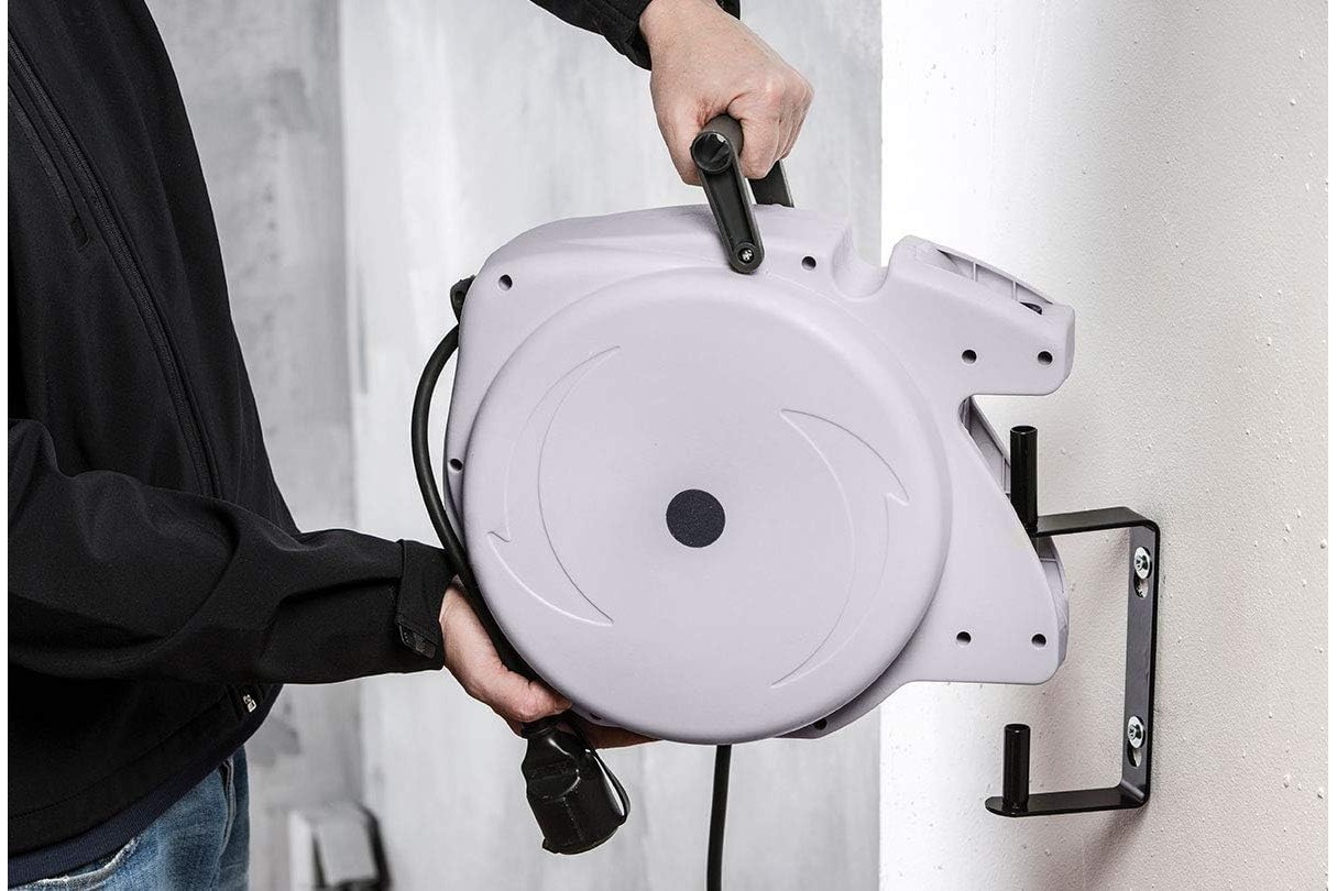 • wystarczy lekkie pociągnięcie za kabel, a automatyczna zwijarka nawinie przewód w obudowę szpuli kablowej