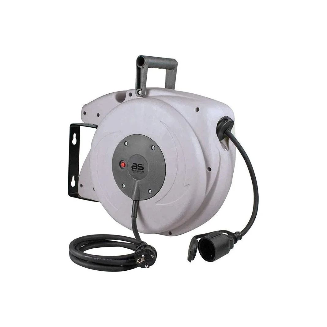 - wystarczy lekkie pociągnięcie za kabel, a automatyczna zwijarka nawinie przewód w obudowę szpuli kablowej