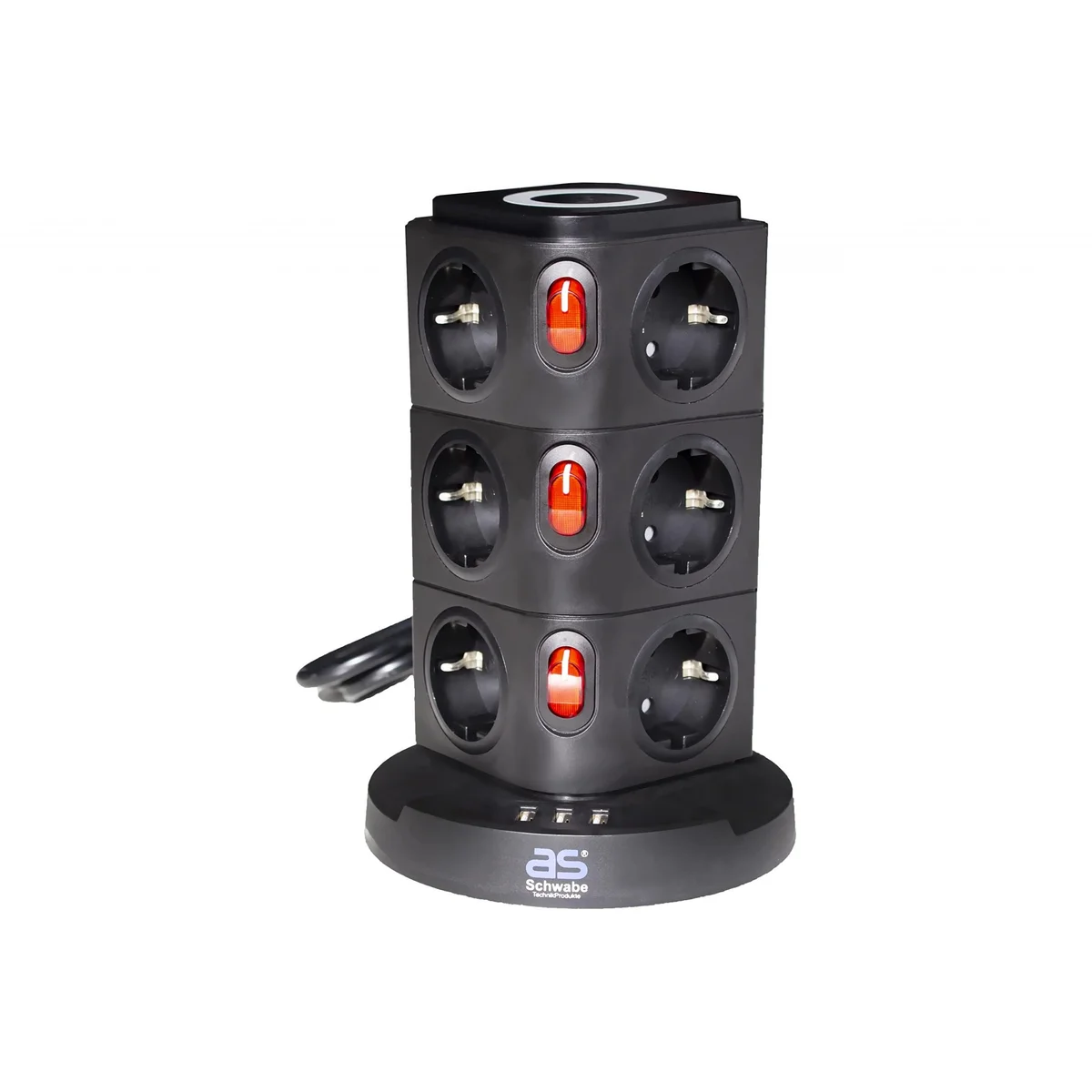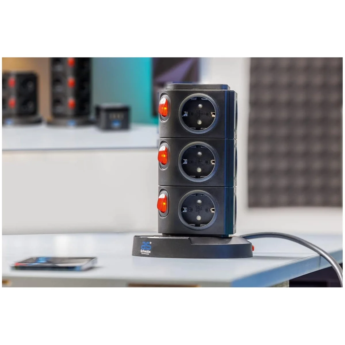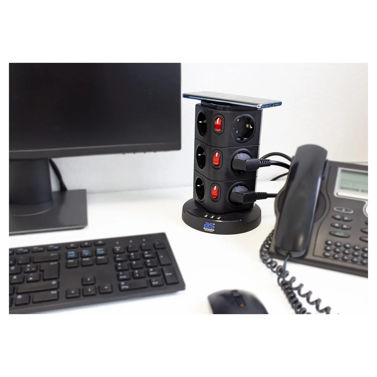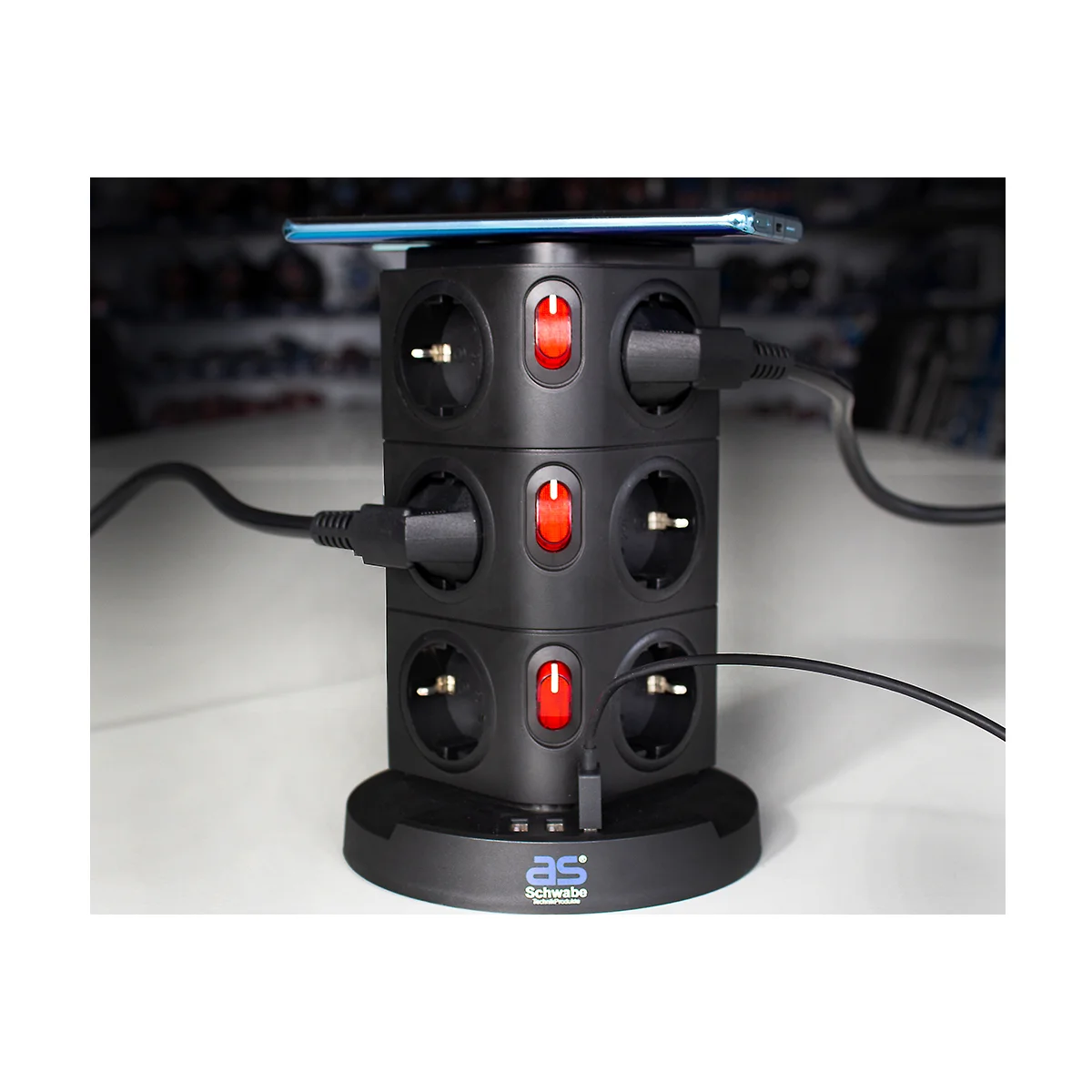 Przedłużacz TOWER 12-gniazdowy z ładowaniem indukcyjnym 3x USB,2 m H05VV-F 3G1,5 IP20 | 18222