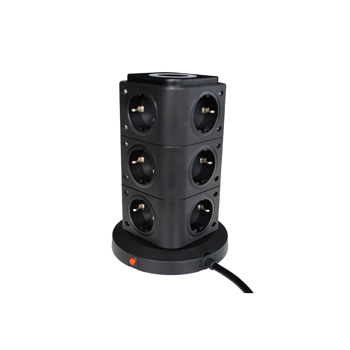 Przedłużacz TOWER 12-gniazdowy z ładowaniem indukcyjnym to innowacyjne rozwiązanie, które łączy w sobie funkcjonalność i nowoczesny design. Wyposażony w 12 gniazd z uziemieniem oraz 3 złącza USB o natężeniu 2,4 A, zapewnia wygodne ładowanie i zasilanie wielu urządzeń jednocześnie. Dzięki przewodowi zasilającemu H05VV-F o długości 2 m oraz kątownem wtyku IP20, urządzenie jest idealne do zastosowania wewnątrz pomieszczeń. Dodatkowo, trzy podświetlane włączniki umożliwiają zarządzanie zasilaniem poszczególnych gniazd, co zwiększa efektywność użytkowania. Ładowarka indukcyjna o mocy 5 W znajduje się na szczycie przedłużacza, co pozwala na łatwe ładowanie urządzeń mobilnych bez potrzeby użycia kabli. Przedłużacz TOWER to doskonały wybór dla osób szukających praktycznego i nowoczesnego sposobu na organizację przestrzeni biurowej lub domowej.
