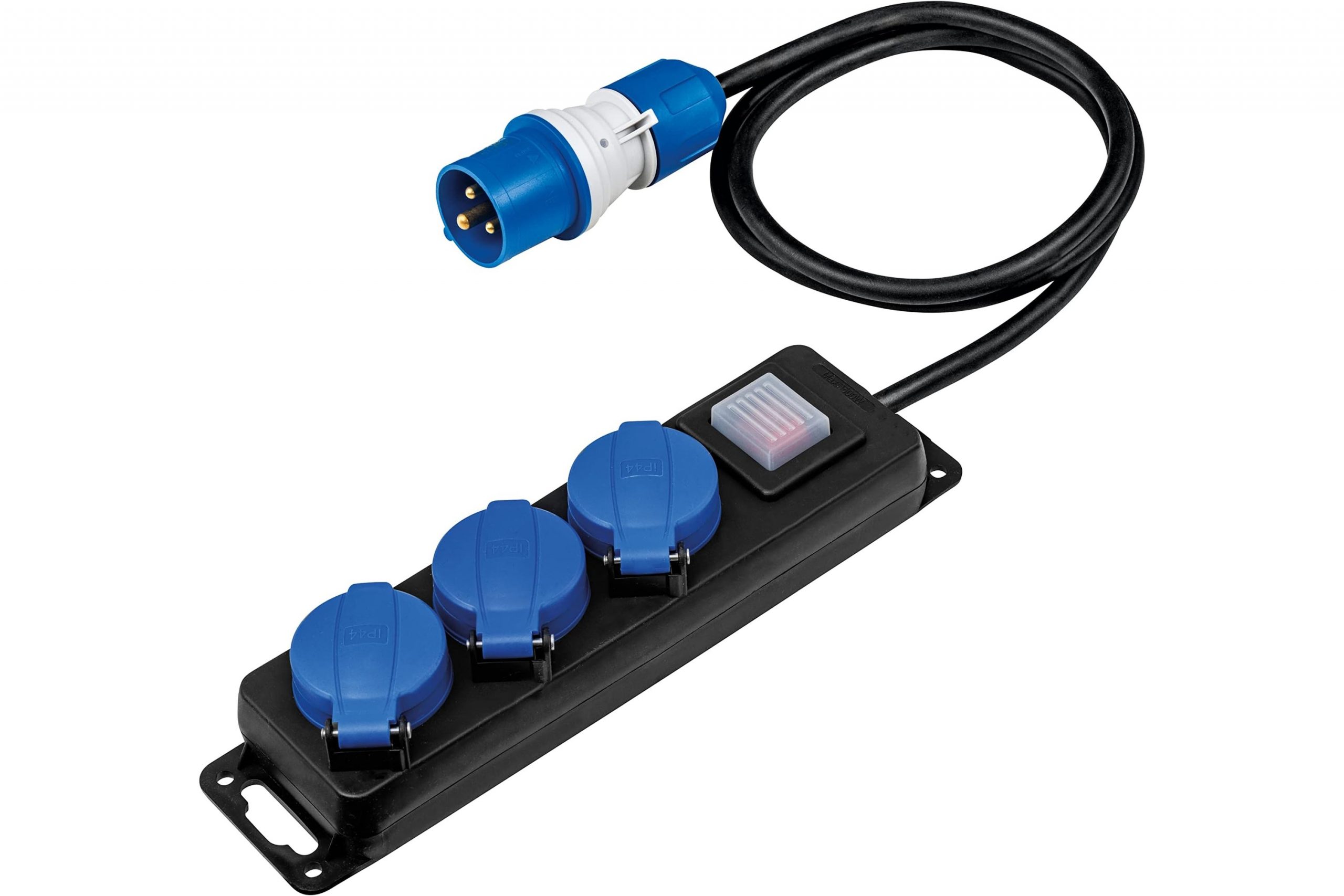 Przedłużacz listwowy z wtyczką CEE 3-gniazdowy z włącznikiem, IP44 H07RN-F 3G1,5 CZA 1,5 m | 38618