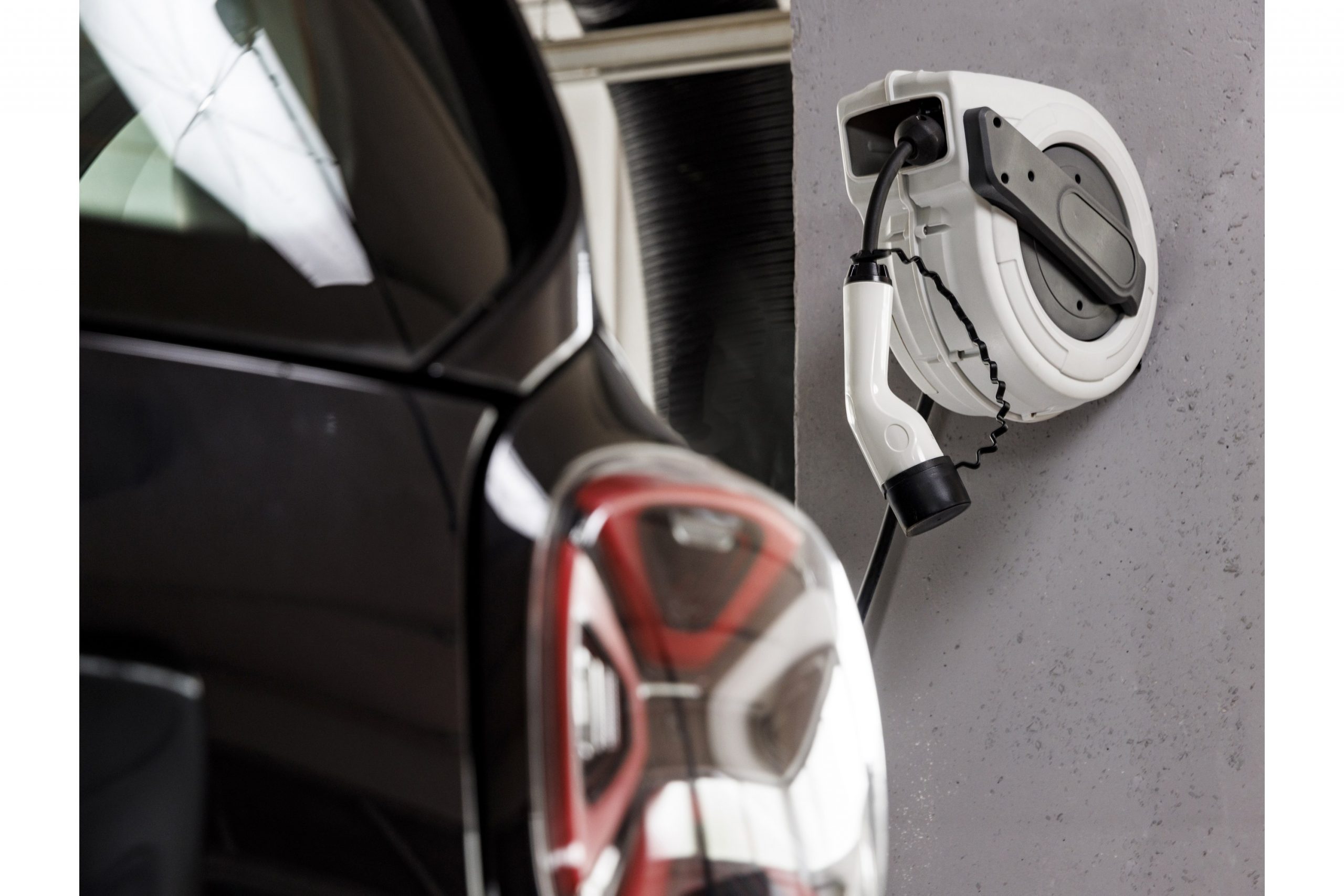 - zwijacz kabla do ładowania samochodów elektrycznych z mechanizmem sprężynowym