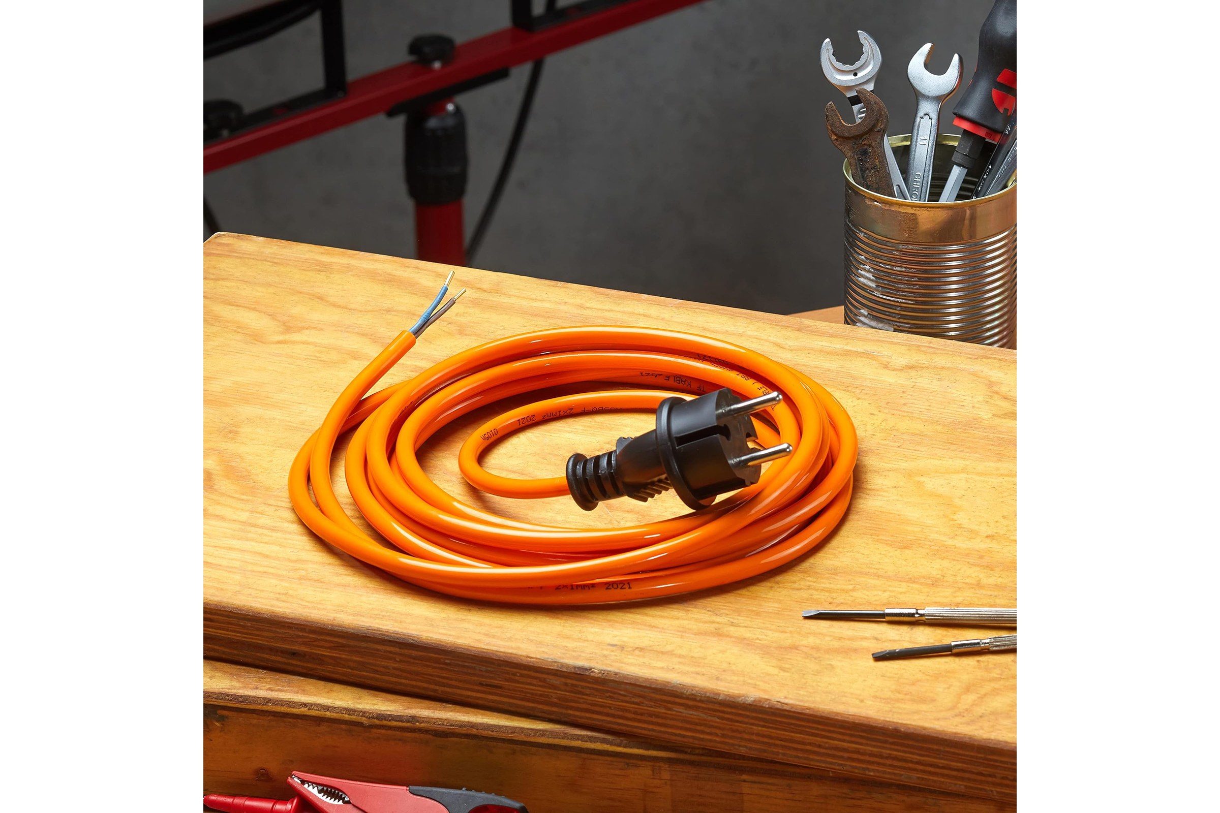 Przewód przyłączeniowy H05BQ-F 2×1,0 w kolorze pomarańczowym o długości 5 m jest idealnym rozwiązaniem do zastosowań zewnętrznych oraz na budowach, dzięki swojej klasie odporności IP44. Wyposażony w wtyczkę o napięciu 230 V i natężeniu 16 A (2P/II), zapewnia bezpieczne i niezawodne połączenie zasilające. Przewód ma odizolowanie na 30 mm z tulejkami, co ułatwia podłączenie oraz zapewnia maksymalną ochronę styków elektrycznych. Dzięki solidnej konstrukcji i wysokiej jakości materiałów, produkt ten gwarantuje długotrwałe użytkowanie oraz odporność na niekorzystne warunki atmosferyczne. To doskonały wybór dla profesjonalistów oraz majsterkowiczów, którzy cenią sobie bezpieczeństwo i wydajność.