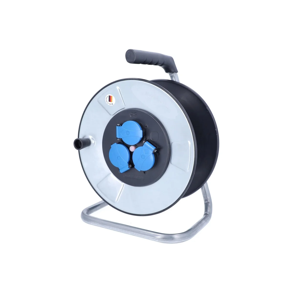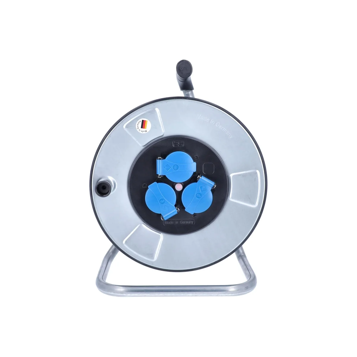 Metalowe bębny kablowe IronCoat łączą w sobie zalety klasycznego bębna kablowego z blachy stalowej z ulepszoną ochroną przed niebezpiecznymi napięciami kontaktowymi. Specjalna, opatentowana izolacja ochronna części bocznych szpuli chroni przed porażeniem prądem spowodowanym uszkodzonymi żyłami kabla podczas jego zwijania. Oznacza to, że prąd nie może zostać dostarczony od wewnętrznych do zewnętrznych części bębna kablowego, które można dotknąć na dużej powierzchni, co zapewnia ochronę przed poważnym uszczerbkiem na zdrowiu.
