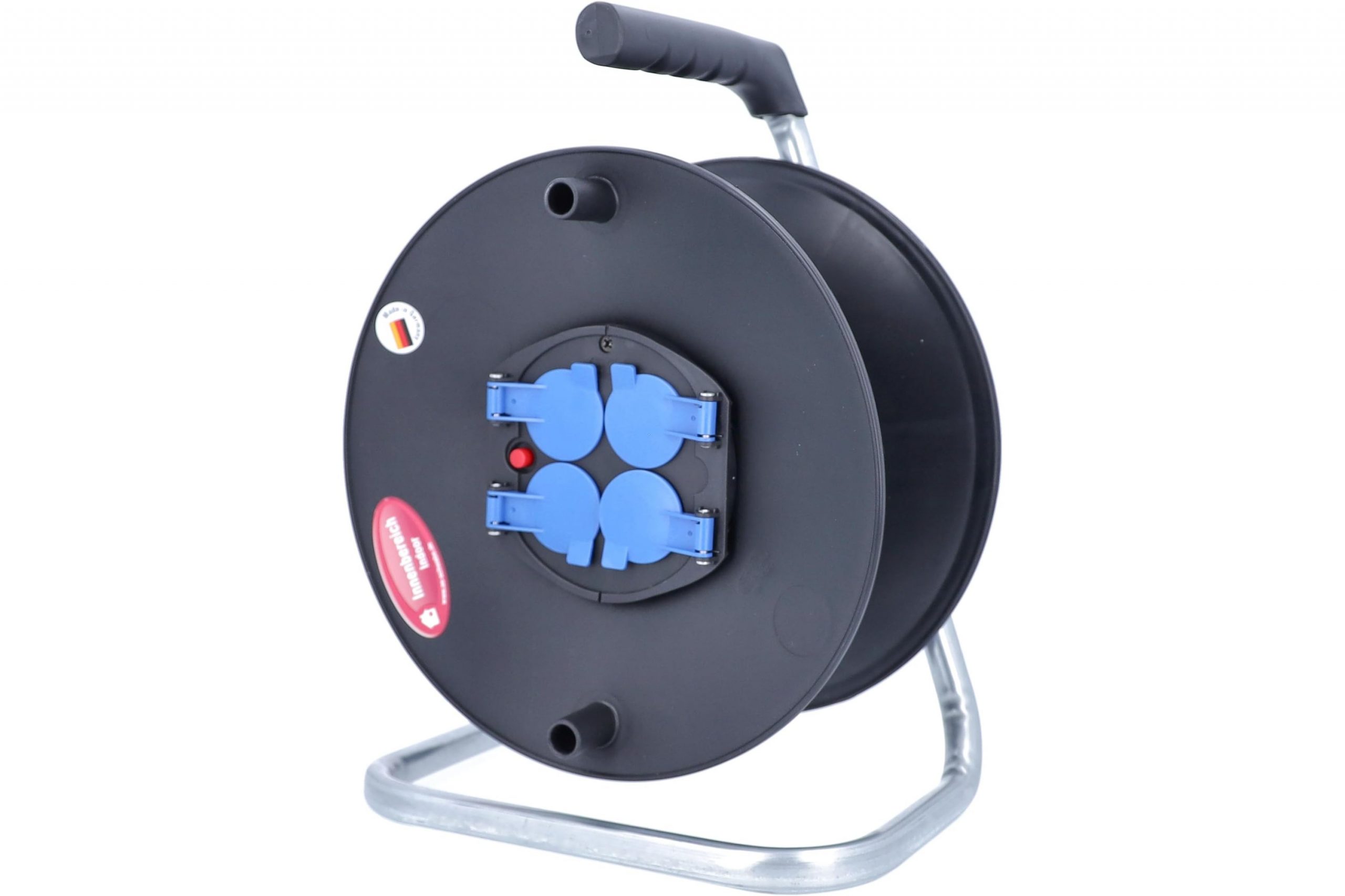 Pusty bęben plastikowy IP20 o średnicy 285 mm to funkcjonalne rozwiązanie do użytku wewnętrznego, idealne do organizacji i przechowywania przewodów elektrycznych. Wyposażony w solidny stelaż metalowy oraz szpulę z tworzywa sztucznego w kolorze czarnym, zapewnia trwałość i estetykę. Użytkownik ma do dyspozycji cztery gniazda IP20 z klapką w kolorze niebieskim, każde z uziemieniem, które obsługują napięcie 230 V i prąd do 16 A, co pozwala na podłączenie różnych urządzeń elektrycznych. Dodatkowe funkcje, takie jak termik oraz hamulec, zwiększają bezpieczeństwo użytkowania, a maksymalne obciążenie 3500 W sprawia, że bęben sprawdzi się w wielu aplikacjach i warunkach pracy. To idealny wybór dla profesjonalistów i majsterkowiczów, którzy cenią sobie wygodę oraz niezawodność.