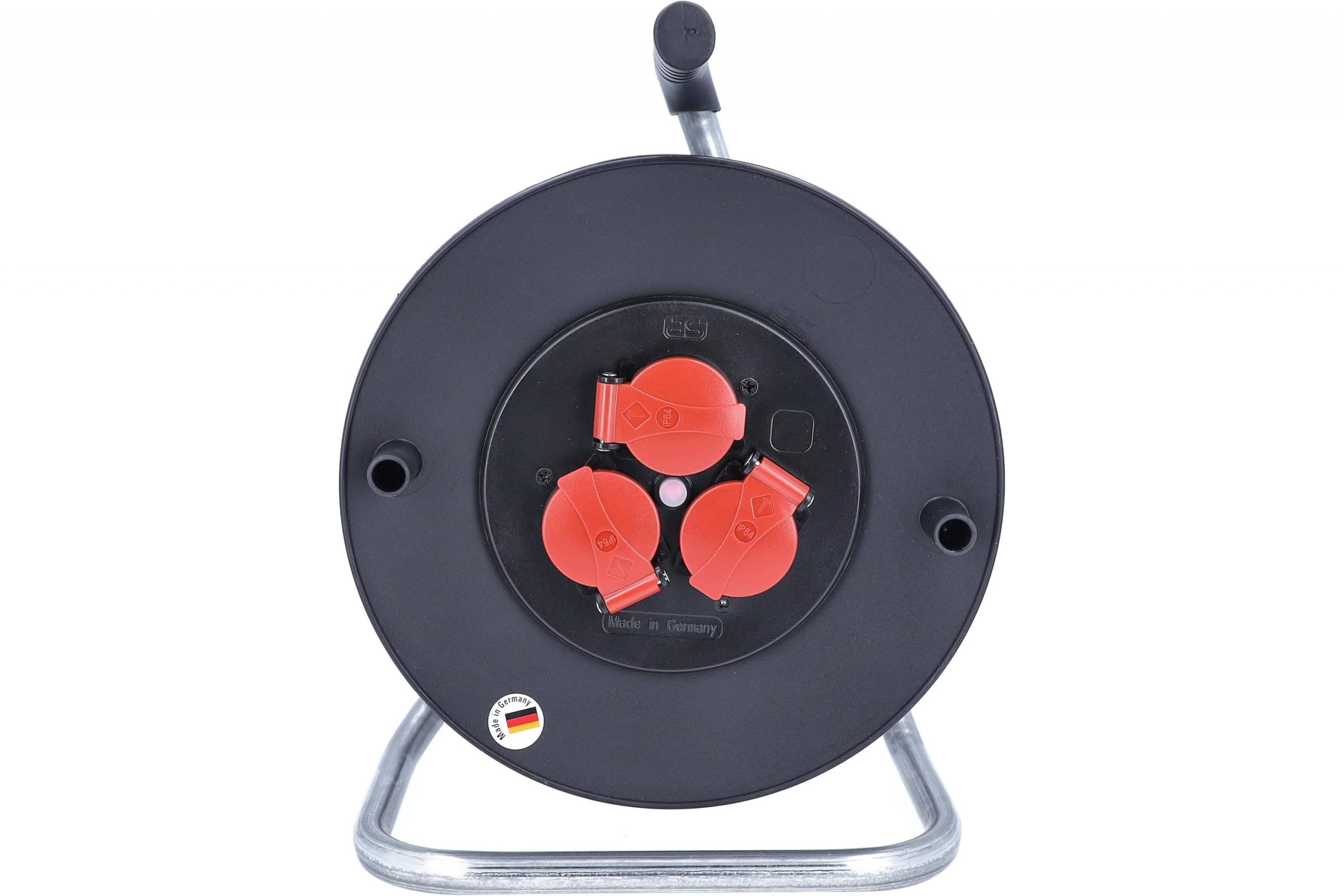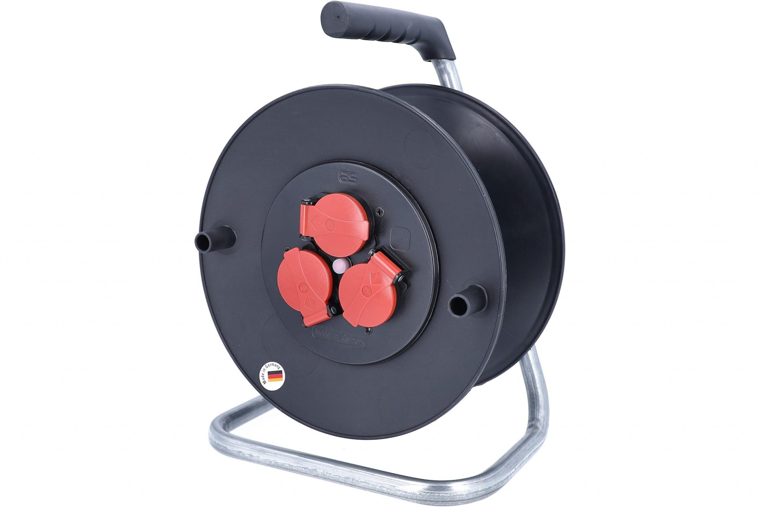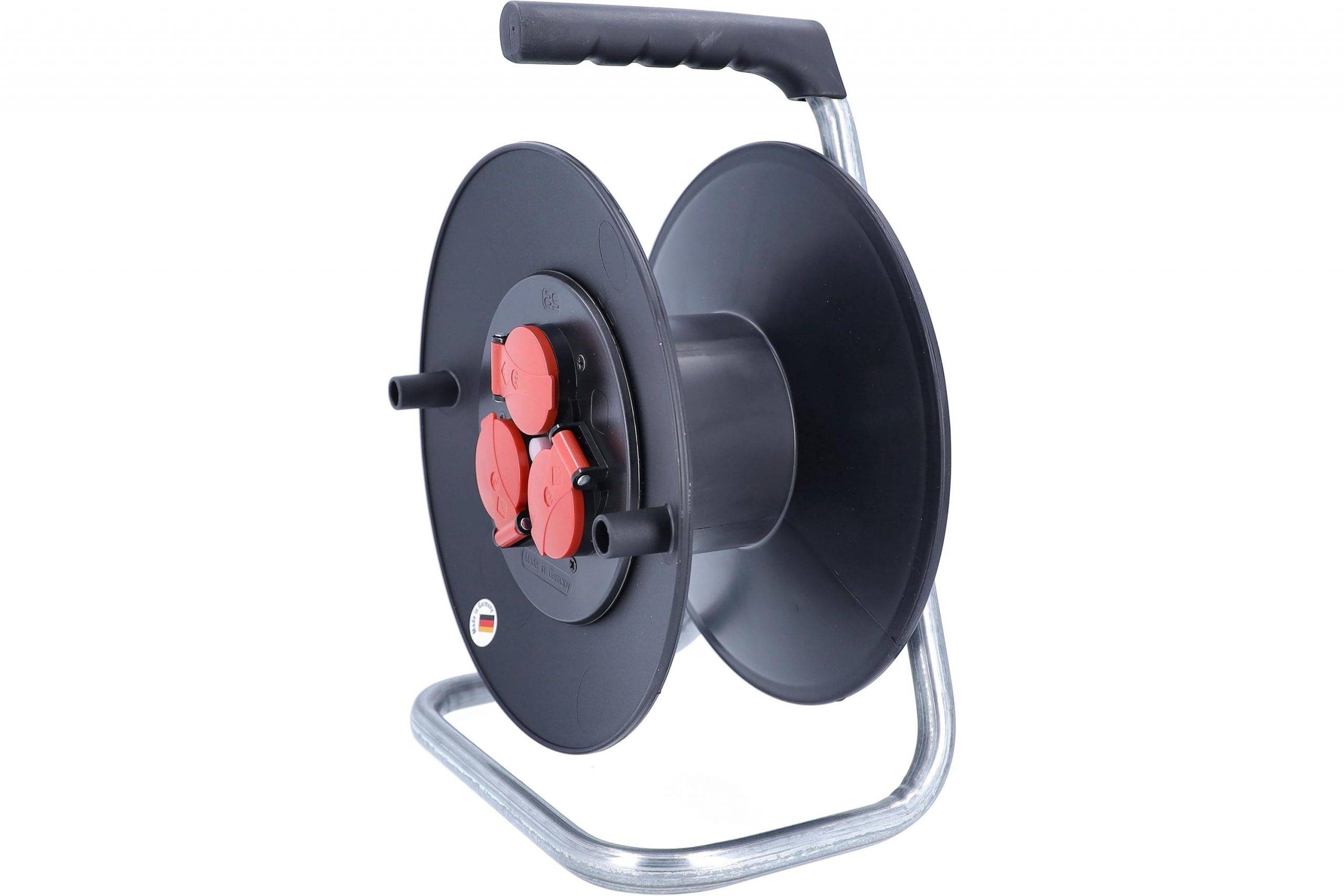 Pusty bęben plastikowy IP44 o średnicy 320 mm to niezawodne rozwiązanie dla wszelkich prac elektrycznych na zewnątrz. Wyposażony w metalowy stelaż oraz plastikową szpulę w eleganckim czarnym kolorze, gwarantuje dużą wytrzymałość i wygodę użytkowania. Zintegrowany uchwyt z tworzywa oraz hamulec zapewniają łatwe i komfortowe przewijanie kabla. Bęben oferuje wyjście z trzema gniazdami IP44 z klapką, wyposażonymi w uziemienie, co zapewnia bezpieczne podłączenie urządzeń o maksymalnym poborze mocy 3500 W (230 V, 16 A). Dodatkowo, wbudowany termik chroni przed przeciążeniem, co zwiększa bezpieczeństwo użytkowania. Produkt spełnia standard IP44, co czyni go idealnym do pracy na świeżym powietrzu, nawet w trudnych warunkach.