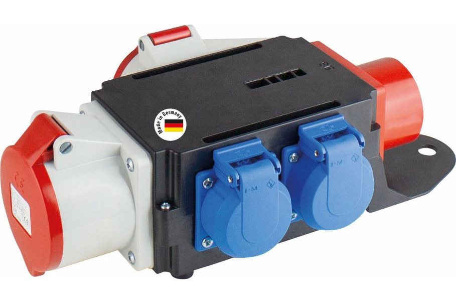 2x gniazdo IP44 z klapką i uziemieniem 230 V, 16 A, 2P+Z1x gniazdo CEE 400 V, 16 A, 5P1x gniazdo CEE 400 V, 32 A, 5P
