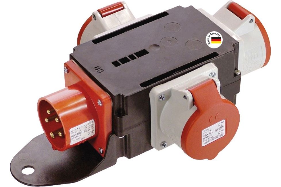 Wyjście | 3x gniazdo CEE 400 V, 16 A, 5P, maks. 400 V, 16 A, 11 kW |