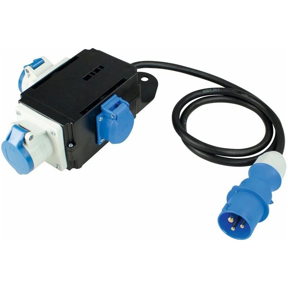 Rozdzielnica kompaktowa MIXO CEE 3P – „EMS“ to solidne i wszechstronne urządzenie, idealne do zasilania sprzętu elektrycznego w warunkach zewnętrznych. Wyposażona w przewód zasilający H07RN-F 3G2,5 o długości 1,5 m z wtyczką CEE 230 V, 16 A oraz różnorodne gniazda, w tym jedno z klapką i uziemieniem oraz dwa gniazda CEE, zapewnia wygodny dostęp do zasilania. Dzięki maksymalnej mocy 3500 W oraz stopniowi ochrony IP44, rozdzielnica gwarantuje niezawodność i bezpieczeństwo użytkowania w trudniejszych warunkach atmosferycznych. Idealnie sprawdzi się w budownictwie, na imprezach plenerowych oraz w miejscach, gdzie potrzebne jest tymczasowe zasilanie. Wybierz MIXO CEE 3P – „EMS“ dla pewnego i efektywnego zasilania w każdych warunkach.