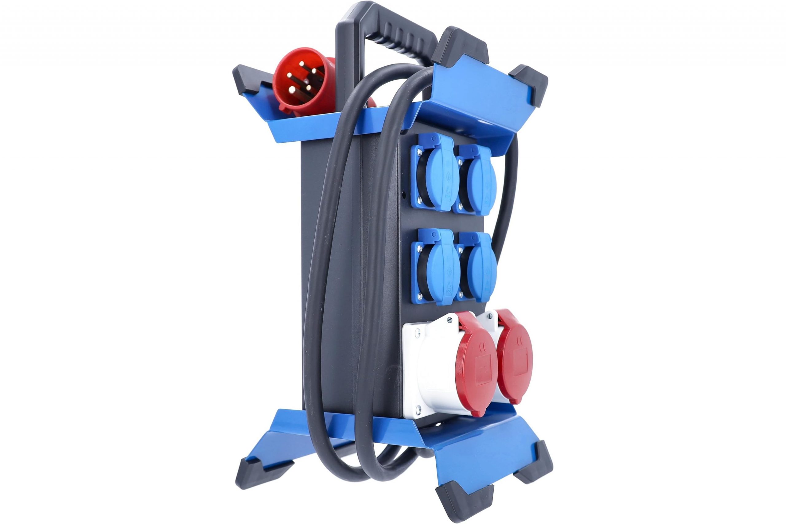 Rozdzielnica przenośna STECKY to niezawodne rozwiązanie dla profesjonalistów potrzebujących mobilnego zasilania. Wyposażona w przewód zasilający z wtyczką CEE 400 V, 16 A oraz 5-p żyłowym kablem H07RN-F o długości 2,5 m, zapewnia elastyczność w różnorodnych warunkach pracy. Z czterema gniazdami 230 V (16 A, 2P+Z) podzielonymi na dwie fazy oraz dwoma gniazdami CEE 400 V (16 A, 5P), dostarcza odpowiednią moc do zasilania różnych urządzeń. Rozdzielnica nie posiada zabezpieczenia, co czyni ją idealnym rozwiązaniem dla zastosowań tymczasowych oraz w miejscach wymagających wysokiej mocy do 11 kW. Dzięki klasie ochrony IP44, urządzenie jest przeznaczone do użytku na zewnątrz, gwarantując bezpieczeństwo i trwałość w trudnych warunkach atmosferycznych.
