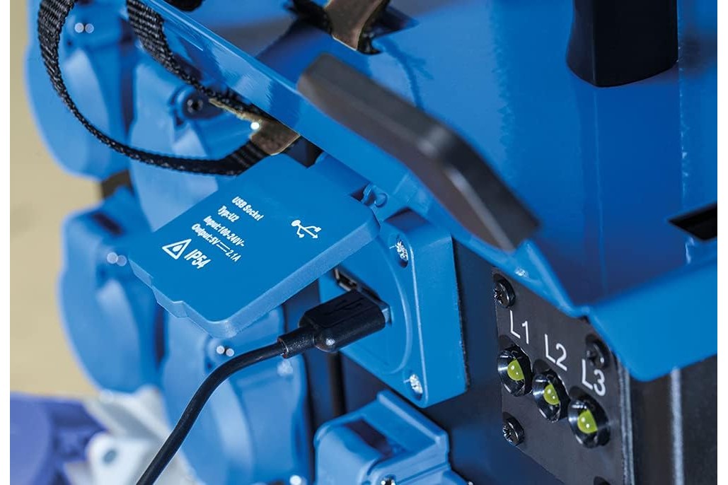 | Wyjście | 7x gniazdo IP44 z klapką i uziemieniem 230 V, 16 A, 2P+Z4x gniazdo CEE 230 V, 16 A, 3P2x port USB 5 V, 2, 1 A |
