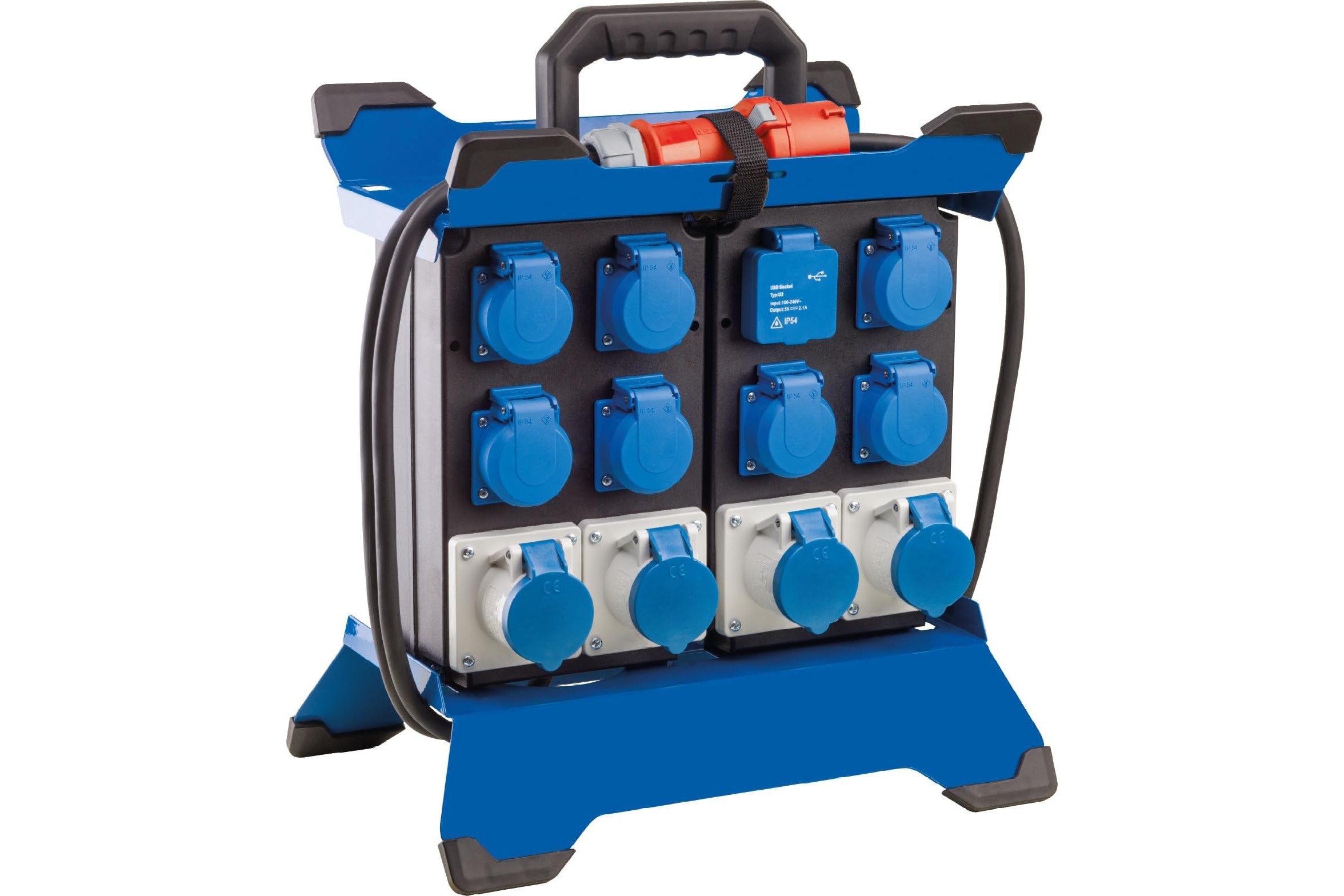 | Wyjście | 7x gniazdo IP44 z klapką i uziemieniem 230 V, 16 A, 2P+Z4x gniazdo CEE 230 V, 16 A, 3P2x port USB 5 V, 2, 1 A |