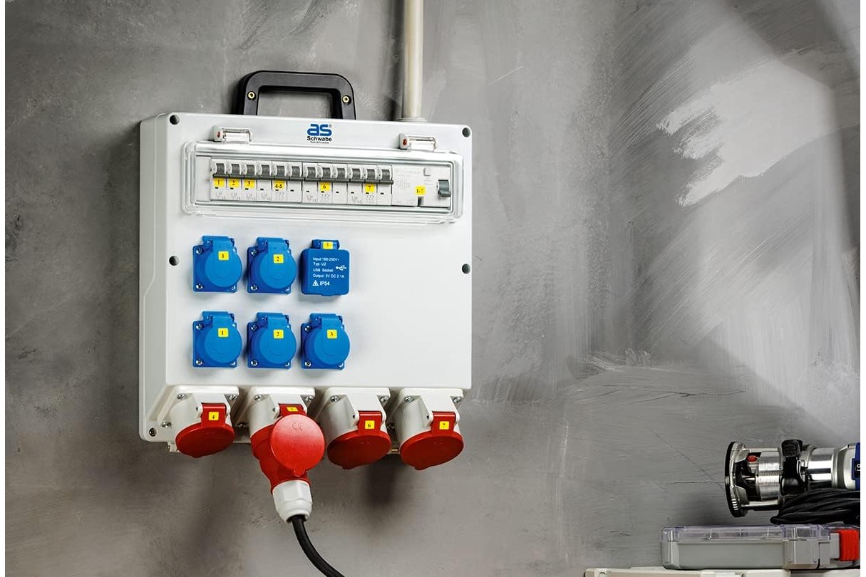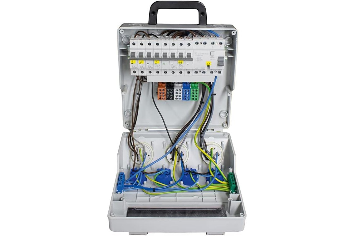 4x gniazdo IP44 z klapką i uziemieniem 230 V, 16 A, 2P+Z 2x gniazdo CEE 400 V, 16 A, 5P 1x gniazdo CEE 400 V, 32 A, 5P