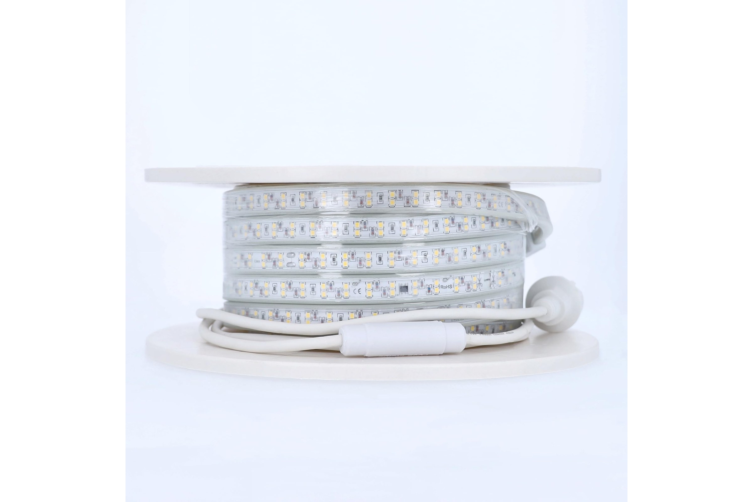 Taśma LED 25m o mocy 300W to wszechstronne rozwiązanie oświetleniowe, idealne do zastosowań zarówno wewnętrznych, jak i zewnętrznych. Dzięki wysokiej mocy 12 W/m i strumieniowi świetlnemu wynoszącemu 1500 lm/m, zapewnia jasne i efektywne oświetlenie w temperaturze barwowej 4000K, co tworzy przyjemną atmosferę w każdym pomieszczeniu lub przestrzeni na zewnątrz. Taśma charakteryzuje się odpornością na warunki atmosferyczne (IP65) oraz wysoką trwałością mechaniczną (IK10), co sprawia, że jest doskonałym wyborem do zastosowań w trudnych warunkach. Dodatkowo, produkt posiada funkcję fotoluminescencji, co umożliwia jego świecenie przez około 10 metrów po wcześniejszym naświetleniu. W zestawie znajduje się pakiet mocujący, a dzięki możliwości łączenia taśm do maksymalnie 150 m, idealnie sprawdzi się w większych instalacjach oświetleniowych.