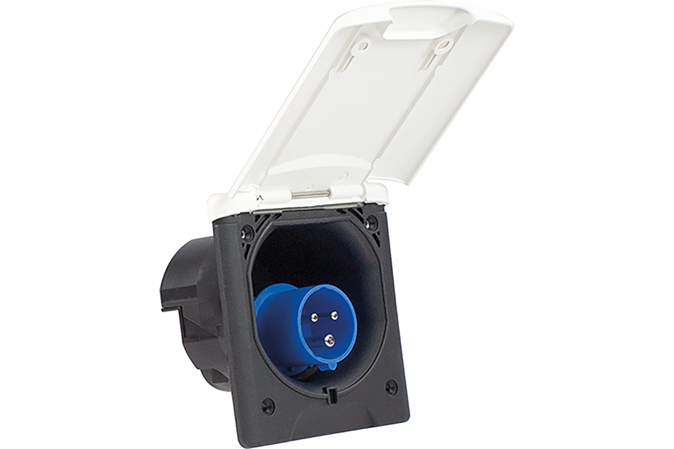 Wtyczka do wbudowania CEE 230 V, 16 A, 3P to niezawodne rozwiązanie dla użytkowników przyczep kempingowych, zapewniające stabilne i bezpieczne źródło zasilania. Dzięki stopniowi ochrony IP44 doskonale sprawdzi się w warunkach zewnętrznych, chroniąc przed wpływem wilgoci oraz zanieczyszczeń. W urządzeniu zastosowano innowacyjną pokrywę z zamknięciem magnetycznym, która gwarantuje łatwe zamykanie oraz uszczelnienie przy wyłączonym zasilaniu. Wtyczka jest w kolorze białym, co wpływa na estetykę montażu w różnorodnych zastosowaniach. Jest to idealne rozwiązanie dla osób poszukujących solidnych i efektywnych komponentów do systemów elektrycznych w ruchomych obiektach.