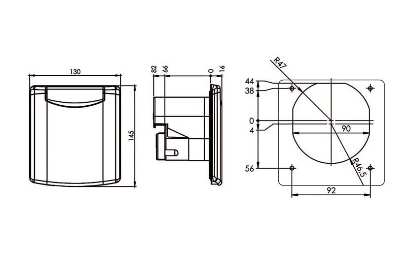 Wtyczka CEE do wbudowania z klapką magnetyczną, IP44 230 V, 16 A, 3P BIA | 62470