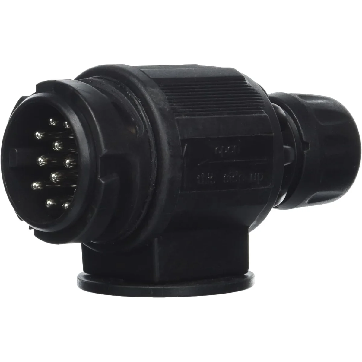 Wtyczka samochodowa 13 pin to niezawodne rozwiązanie do montażu na kablu, idealna do zastosowań zewnętrznych. Dzięki dławicy skrętnej zapewnia solidne połączenie, minimalizując ryzyko uszkodzeń mechanicznych i zwiększając trwałość instalacji. Przeznaczona do zasilania urządzeń o napięciu 12 V DC, wtyczka charakteryzuje się klasą ochrony IP44, co oznacza ochronę przed wodą i pyłem, co czyni ją doskonałym wyborem do użytku w trudnych warunkach atmosferycznych. Jej wysoka jakość wykonania gwarantuje bezpieczne i stabilne połączenie, co przekłada się na większy komfort i niezawodność podczas użytkowania pojazdów oraz przyczep.