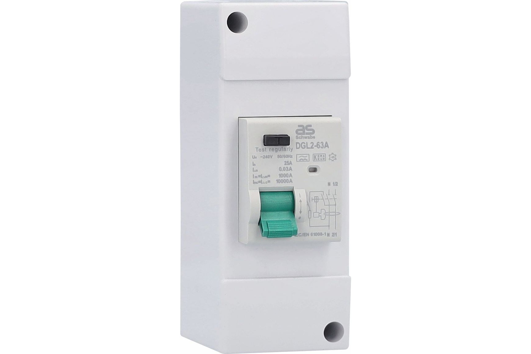 Wyłącznik różnicowoprądowy w białej obudowie RCD 25 A, 30 mA, typ A, 2P | 61565
