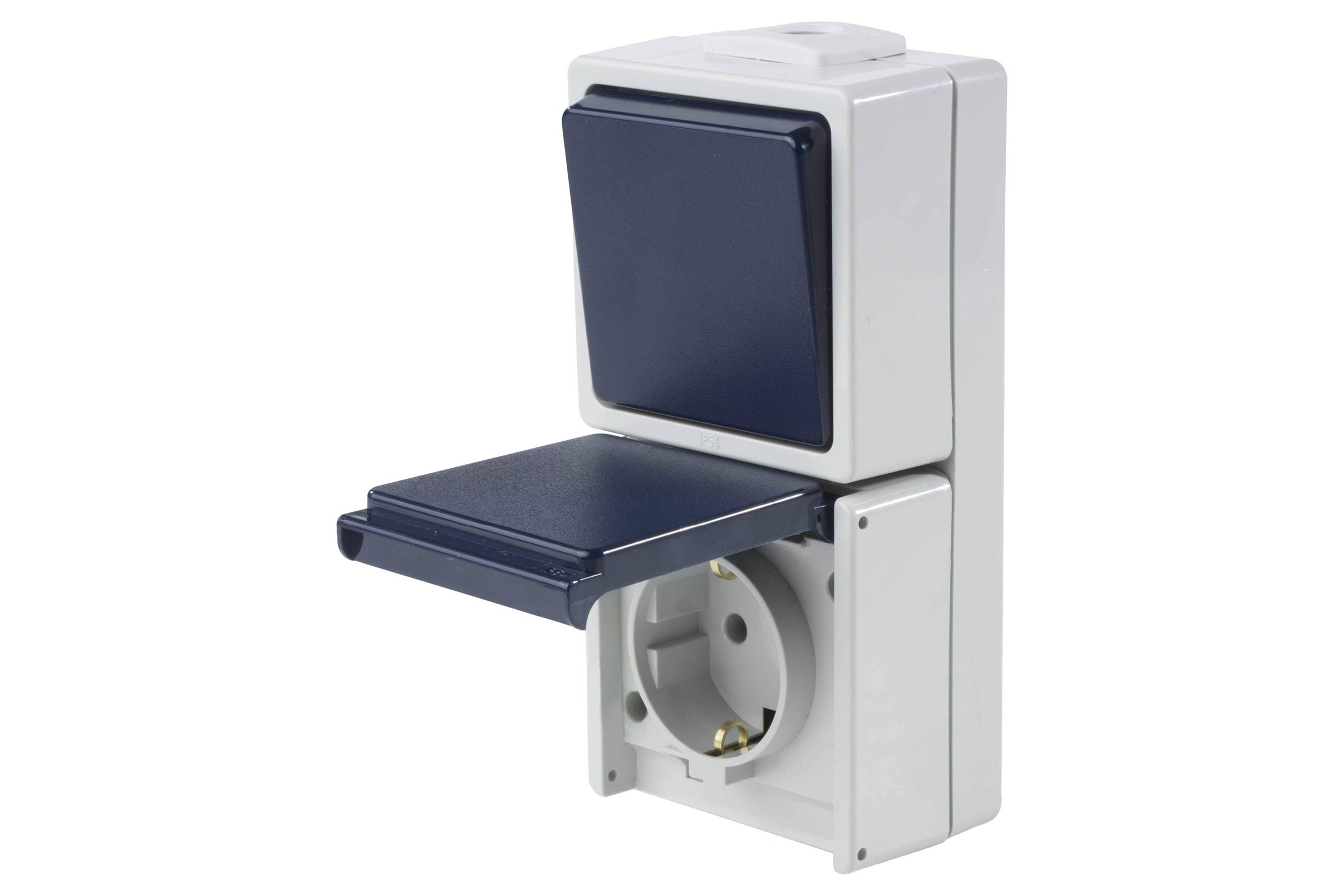 Zestaw łącznik pojedynczy i gniazdo z uziemieniem, układ pionowy 230 V, 16 A, 10 A, IP54 | 62455