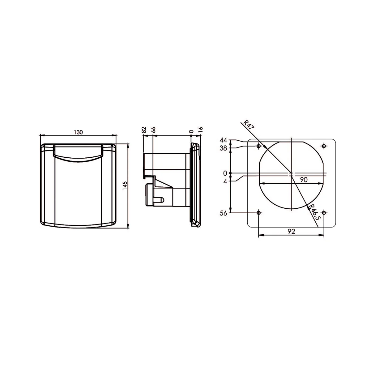 230 V, 16 A, 3-polig, 6 h