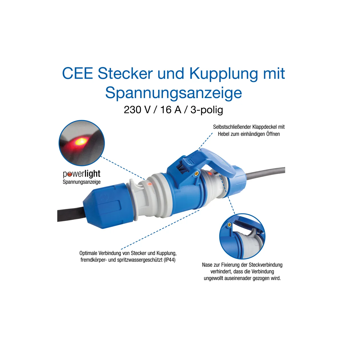 Camping CEE Stecker mit powerlight