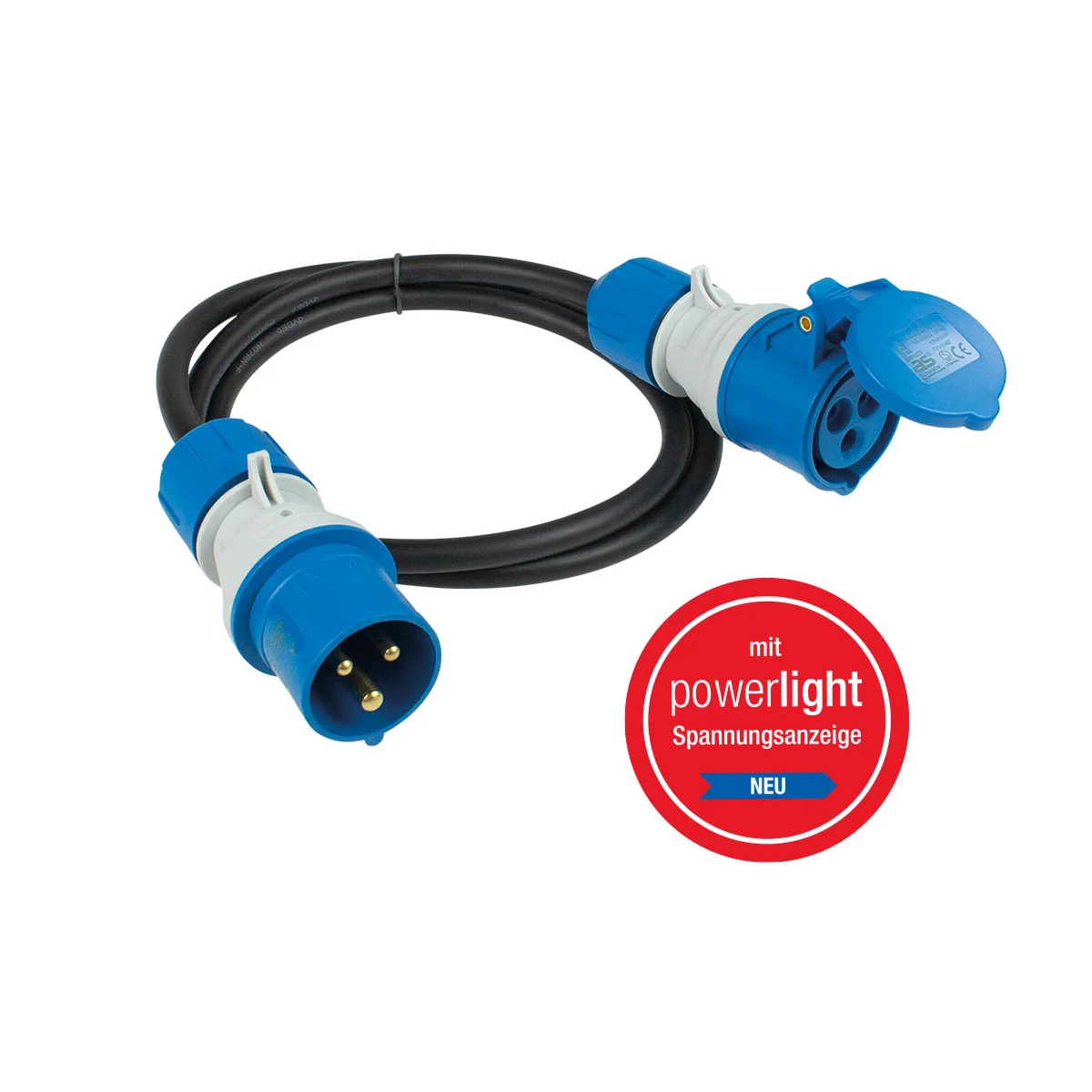 Mit der integrierten powerlight Spannungsanzeige verkürzen Sie die lästige Fehlersuche mit einem Blick! Leuchtet die rote LED an Stecker und Kupplung, dann liegt Spannung an.