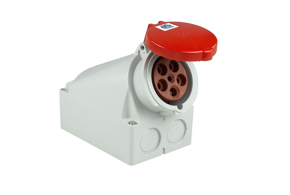 • CEE Wandsteckdosen mit schlagfestem, spritzwassergeschütztem Gehäuse aus Polyamid