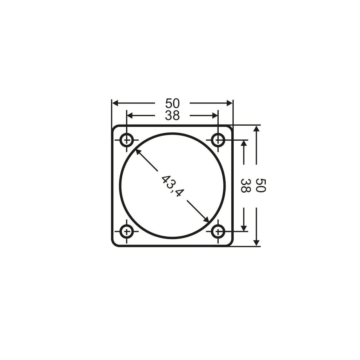 • Lochabstand HxB in mm: 38×38