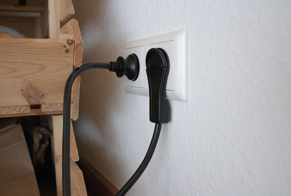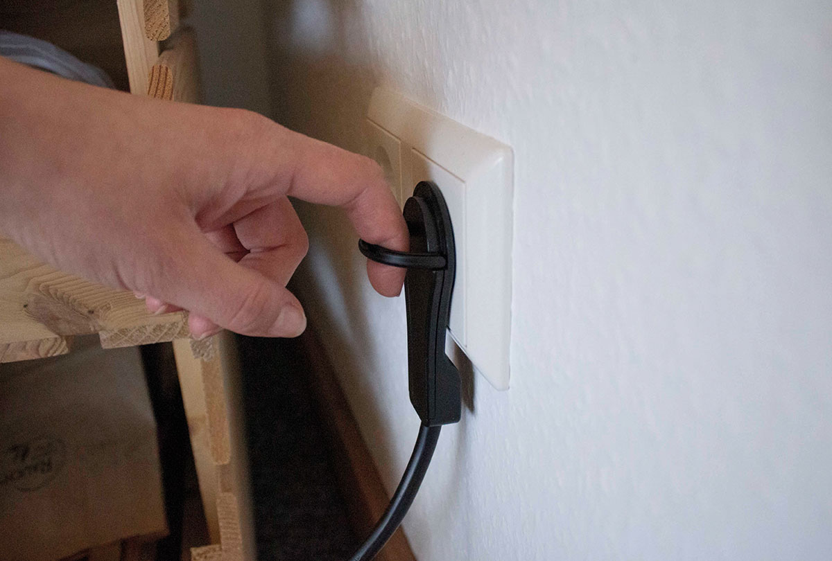 • mit ausklappbarem Bügel für einfaches Herausziehen aus der Steckdose