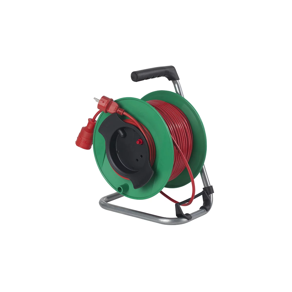 Gerätetrommeln ermöglichen das Arbeiten mit elektrischen Werkzeugen an Stellen, an denen Sie sich nicht ungehindert bewegen können, wie beispielsweise auf dem Dachboden. Sie schließen die Gerätetrommel mit der 1,5 m langen Anschlussleitung an den Netzstrom an und lassen die Gerätetrommel auf dem stabilen Untergrund stehen. Rollen Sie anschließend die Verlängerungsleitung vom Trommelkörper ab und legen die Steckdose zum Arbeitsort. Dort schließen Sie Ihr Werkzeug bequem an und nutzen beim Arbeiten die volle Kabellänge ohne lästiges Umpositionieren der Kabeltrommel.