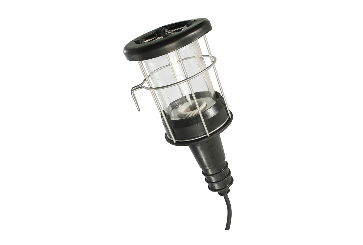• mit Gummihandgriff, verzinktem Schutzkorb und Schutzglas
