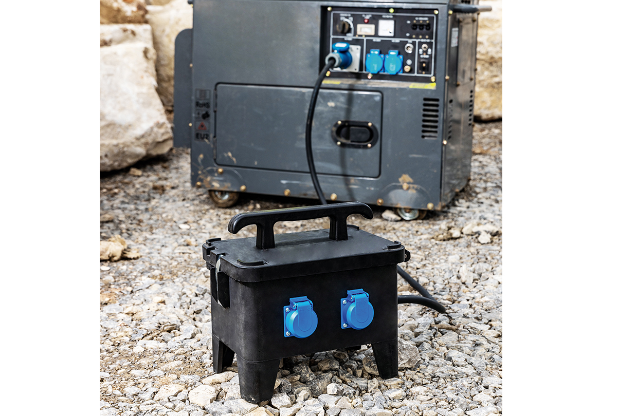 Zum Schutz vor Elektrounfällen muss beim Anschluss mehrerer Verbraucher an einen Stromerzeuger jede verwendete Steckdose einzeln über einen FI-Schutzschalter abgesichert werden.