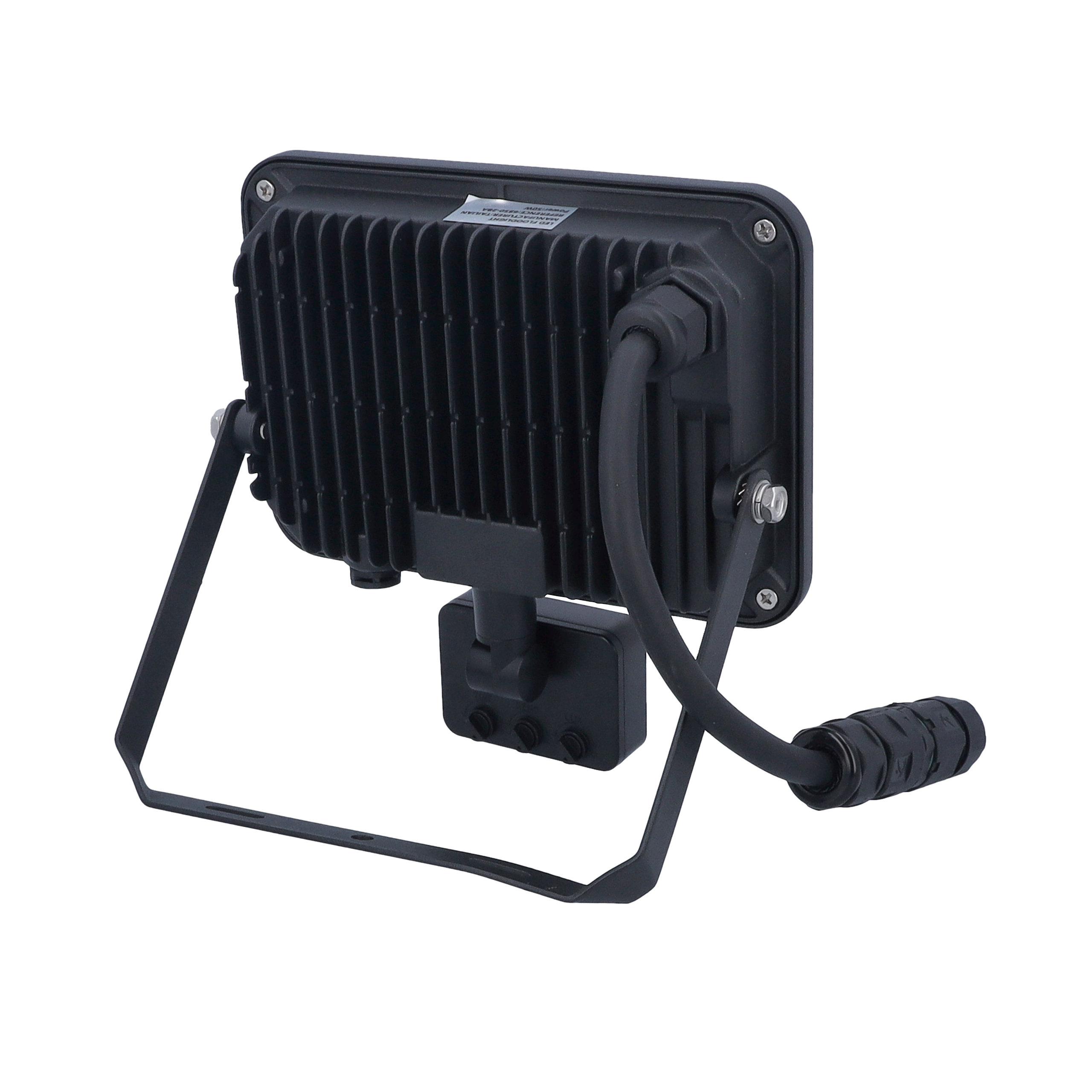 Leistungsstarker 50 W LED-Strahler mit Bewegungsmelder und ca. 6000 Lumen Lichtleistung (4000 K, neutralweiß). Robustes Kunststoffgehäuse mit Aluminium-Kühlblech und Druckausgleichselement gegen Kondenswasser. Spritzwassergeschützt (IP44), mit satiniertem Diffusor, einstellbarem Sensor (10 s–10 min / 3–10000 Lux / 4–10 m) und Schnellanschlussadapter. Ideal für den Außenbereich.