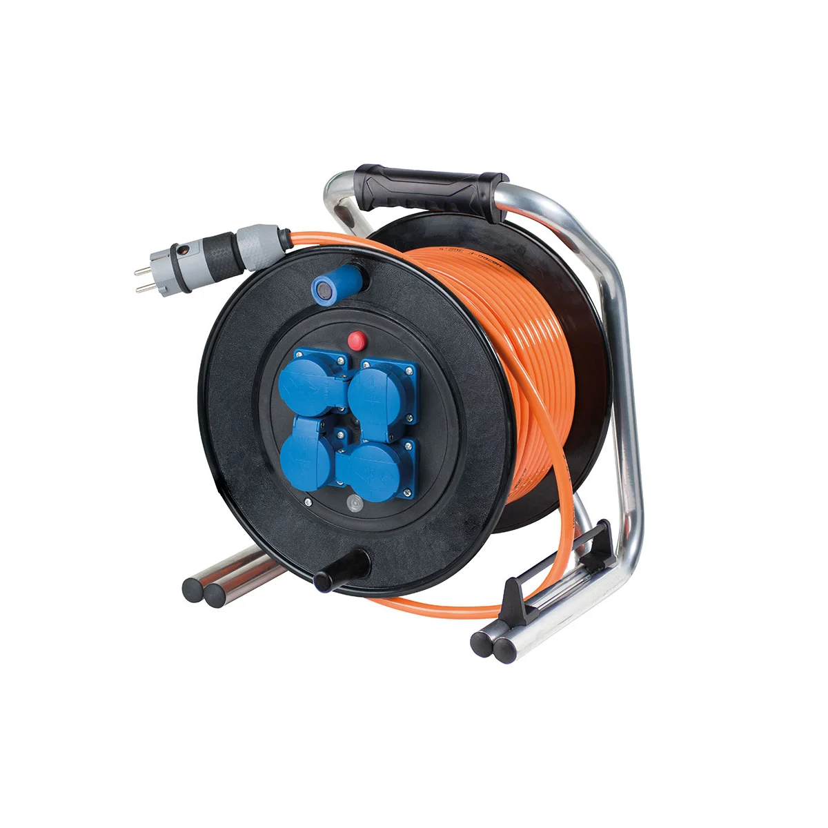 Panzer-Vollgummi Kabeltrommeln sind durch das speziell vulkanisierte Hartgummi extrem belastbar und damit ideal für härteste Beanspruchung im professionellen Baustelleneinsatz geeignet.