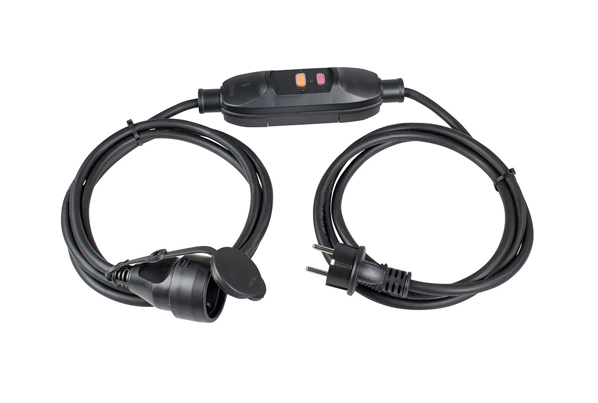 Der PRCD-S ist eine als Schnur-Zwischengerät konzipierte, allpolig schaltende, ortsveränderliche Differenzfehlerstromeinrichtung mit elektronischer Fehlerstromauswertung.