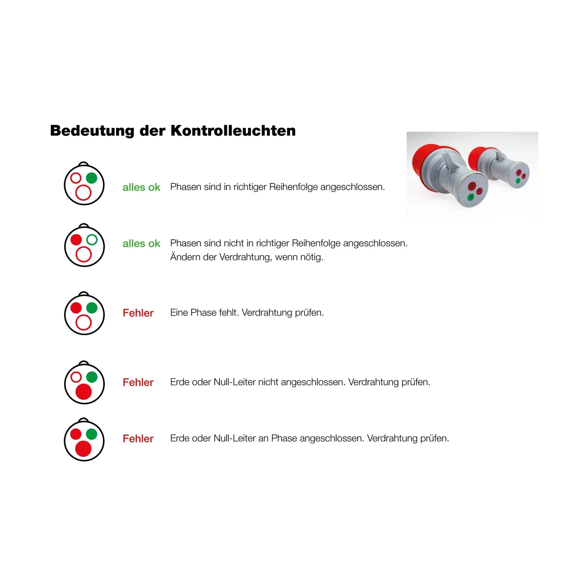 Der Prüfstecker dient der gefahrlosen Kontrolle der Drehfeldrichtung bei CEE Steckdosen. Nach VDE 0100 § 31b 5 müssen Drehstromsteckdosen so angeschlossen sein, dass sich – die Steckbuchsen von vorn im Uhrzeigersinn betrachtet – ein Rechtsdrehfeld ergibt. Über drei Kontrolllampen zeigt der Prüfstecker ein Rechts- oder Links-Drehfeld bzw. das Fehlen einer Phase an.