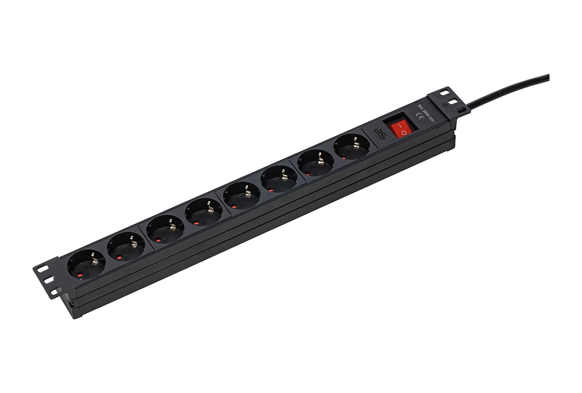 Mit unseren 19“ Steckdosenleisten können bis zu neun Geräte über Schutzkontaktstecker