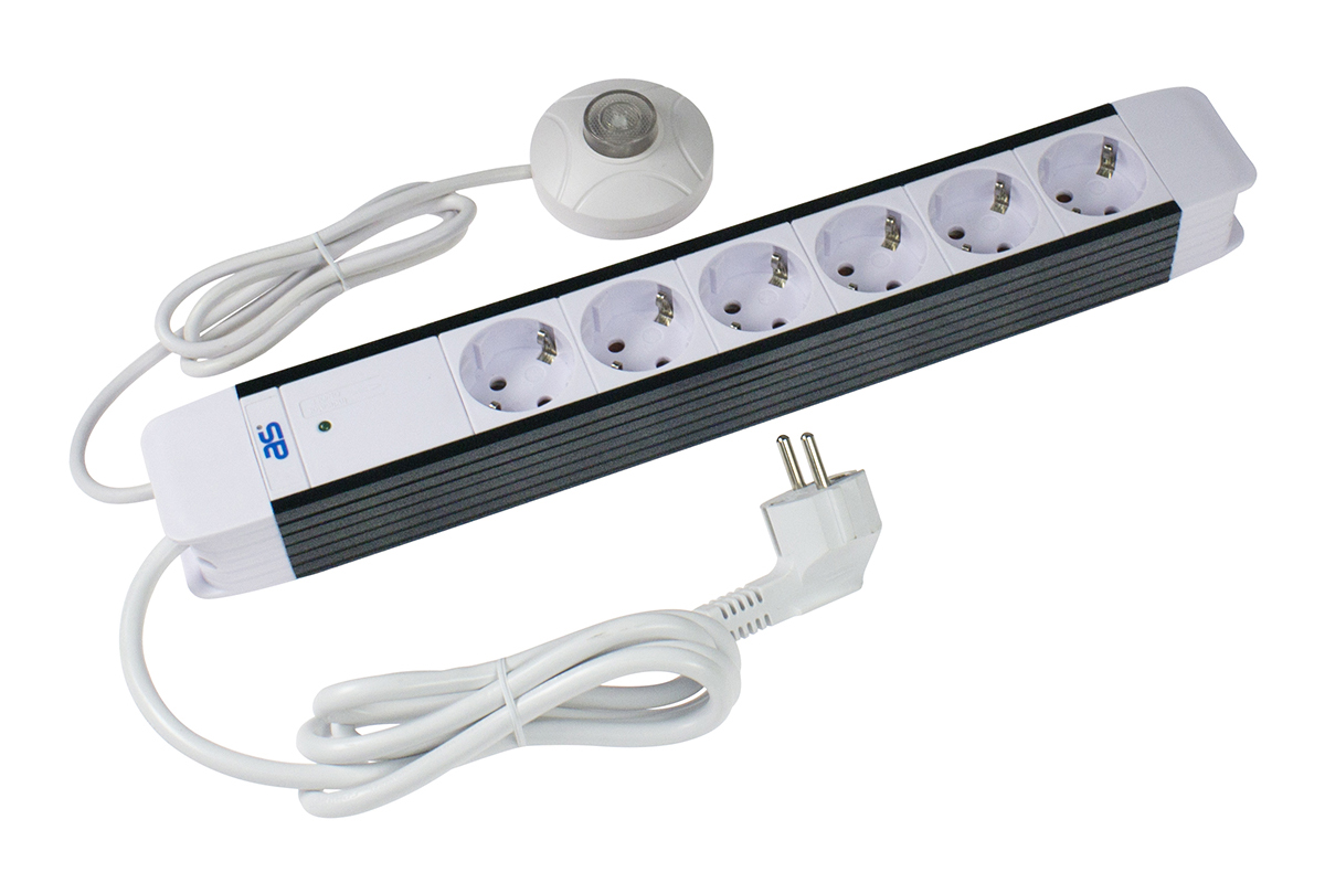 • 6-fach Steckdosenleiste mit separatem Hand-/Fußschalter mit Kontrollleuchte