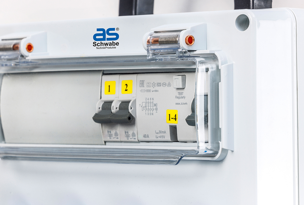 Die Steckdosen sind über Fehlerstrom- und Leitungsschutzschalter abgesichert. Alle Sicherungsschalter sind hinter einem selbstschließendem Klappfenster aus transparentem Kunststoff verbaut, jederzeit sichtbar und zugänglich.