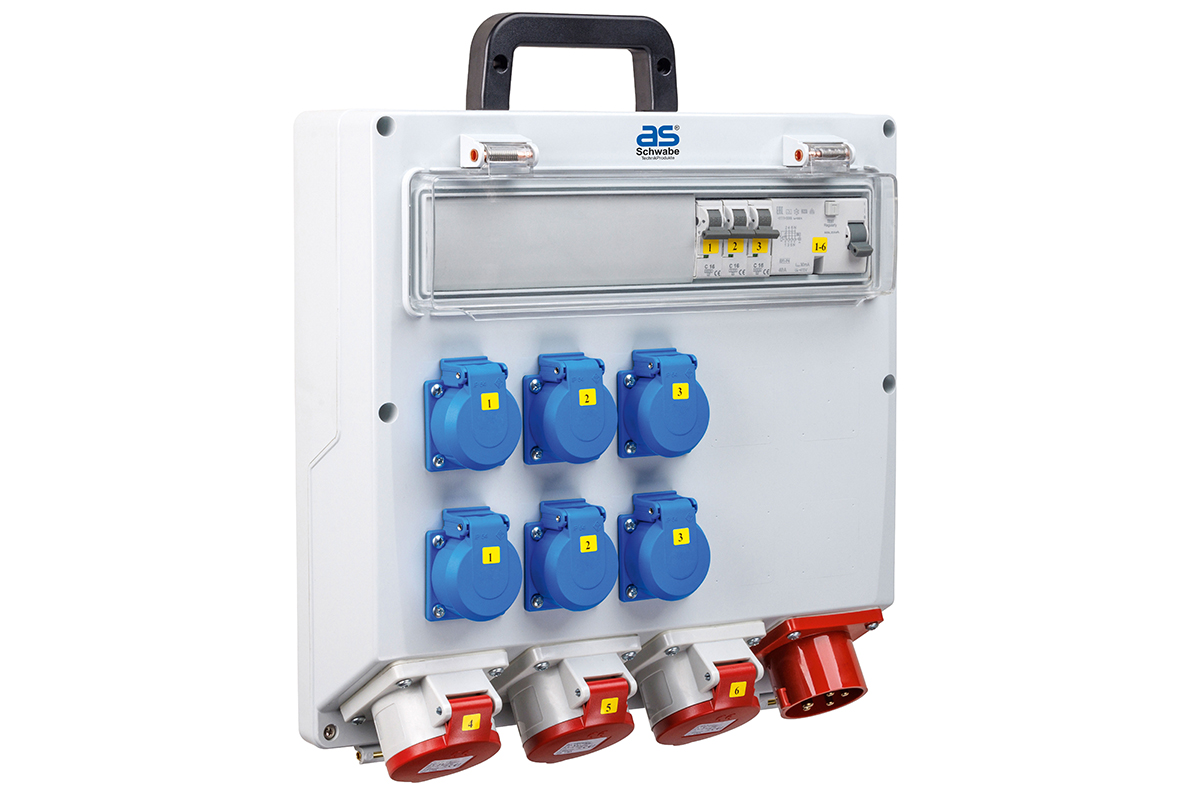 Für den dauerhaften Einsatz wird der Verteiler fest an der Wand montiert. Markierungen für Bohrlöcher auf der Rückseite des Gehäuses erleichtern die Montage. Bei zeitlich begrenzten Einsätzen kann der Verteiler alternativ auch mit Hilfe der Löcher im Griff an die Wand geschraubt werden.